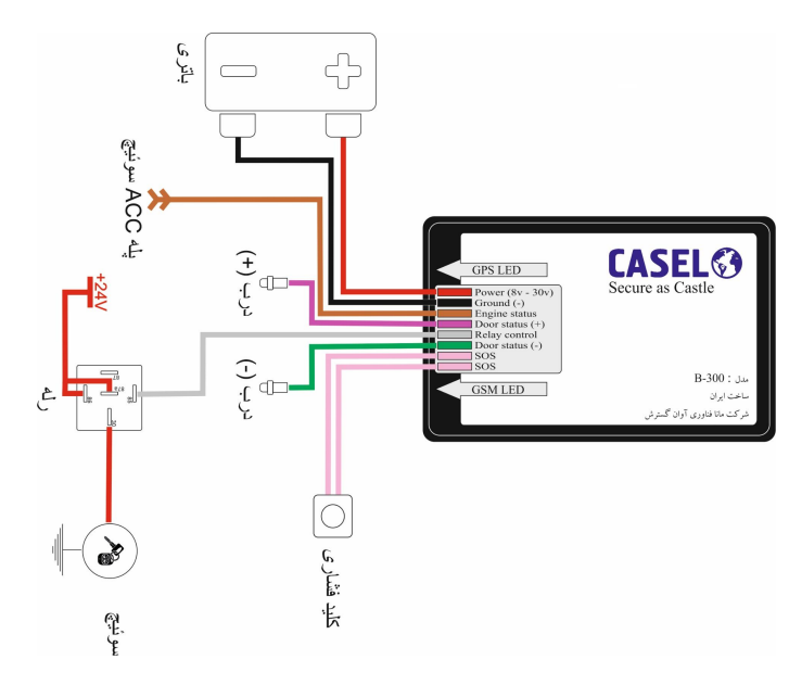 - دو سیم اخر (صورتی) :متصل به دکمه فشاری sos